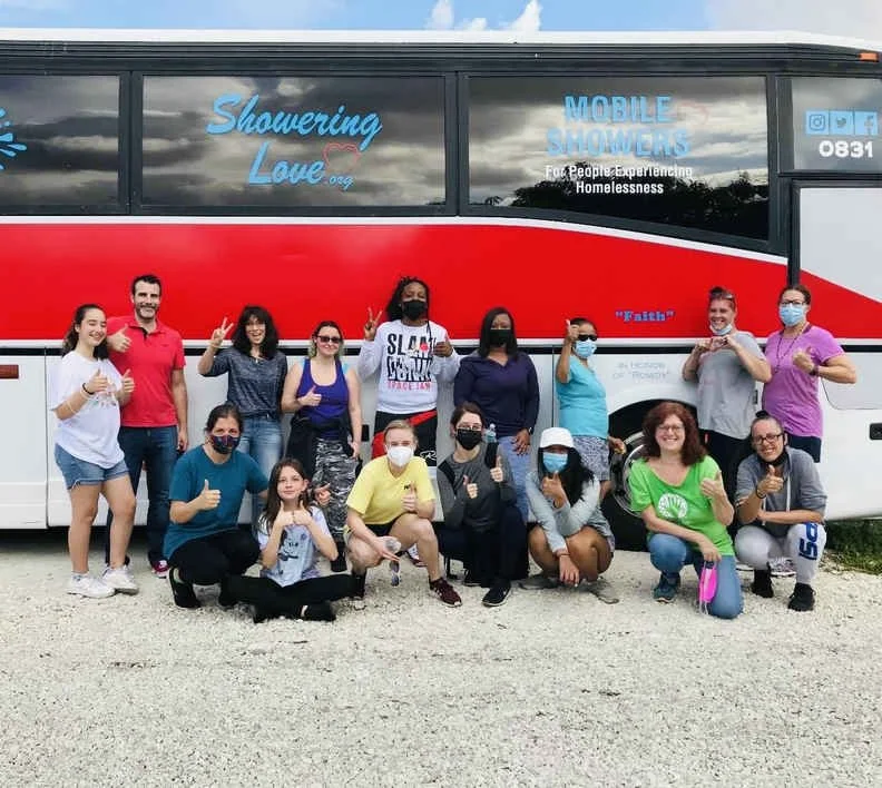 On the first Saturday of every month, People from the community come together by Volunteering with Showering Love to help in many different areas of the local non-profit. They incorporated in 2016. Showering Love converts buses into mobile sanitation shower units so the homeless can receive weekly showers. Guests as Showering refers to people experiencing homelessness also provides NEW clothing for each guest every time the guest showers.